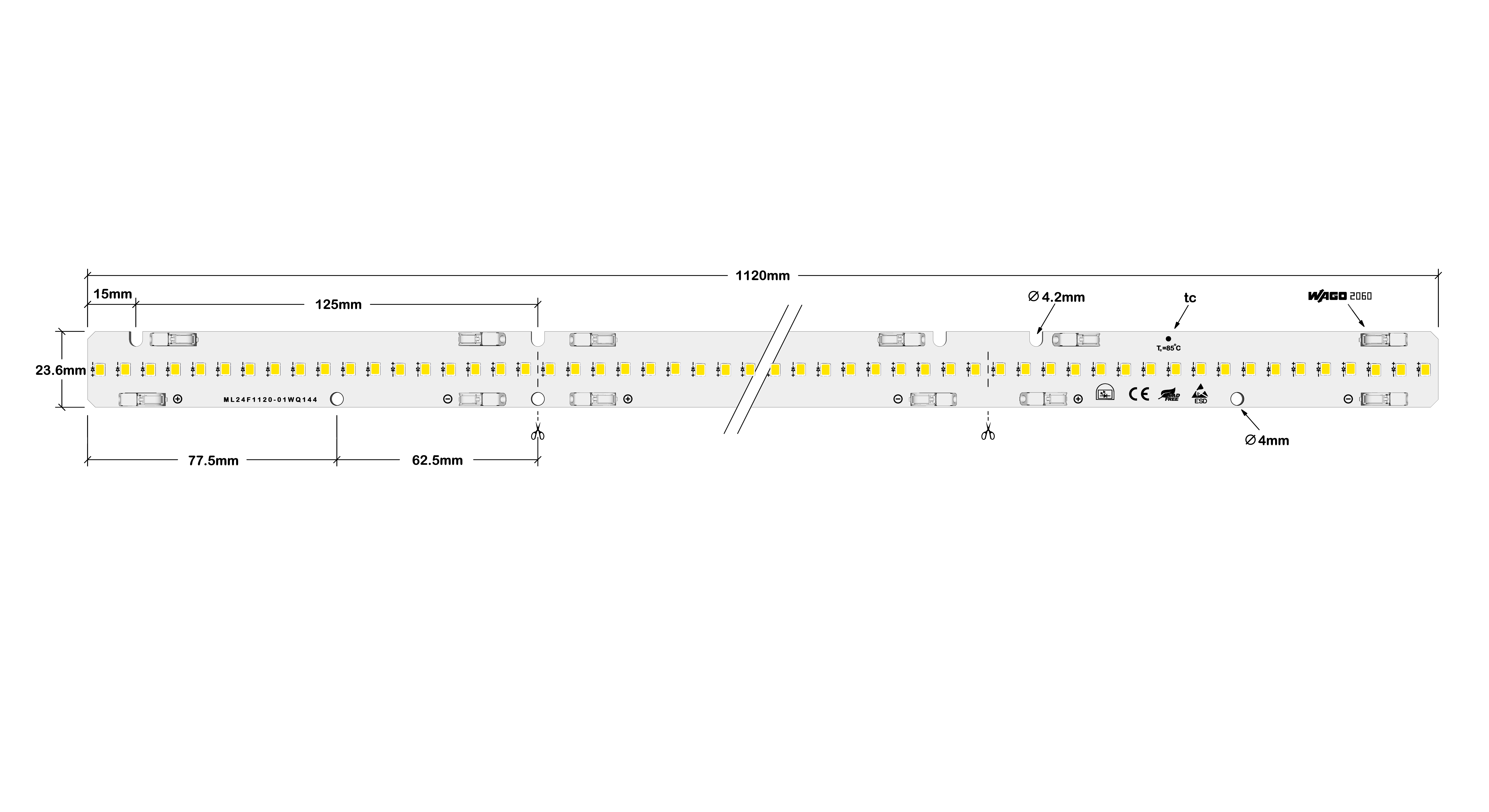 - Dimensions: 24x1120mm